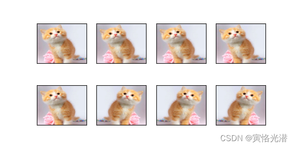 为了后续便于观察这张猫的图像,做了增广之后的效果,我们在画布上定义一个显示多行多列的图片的函数: