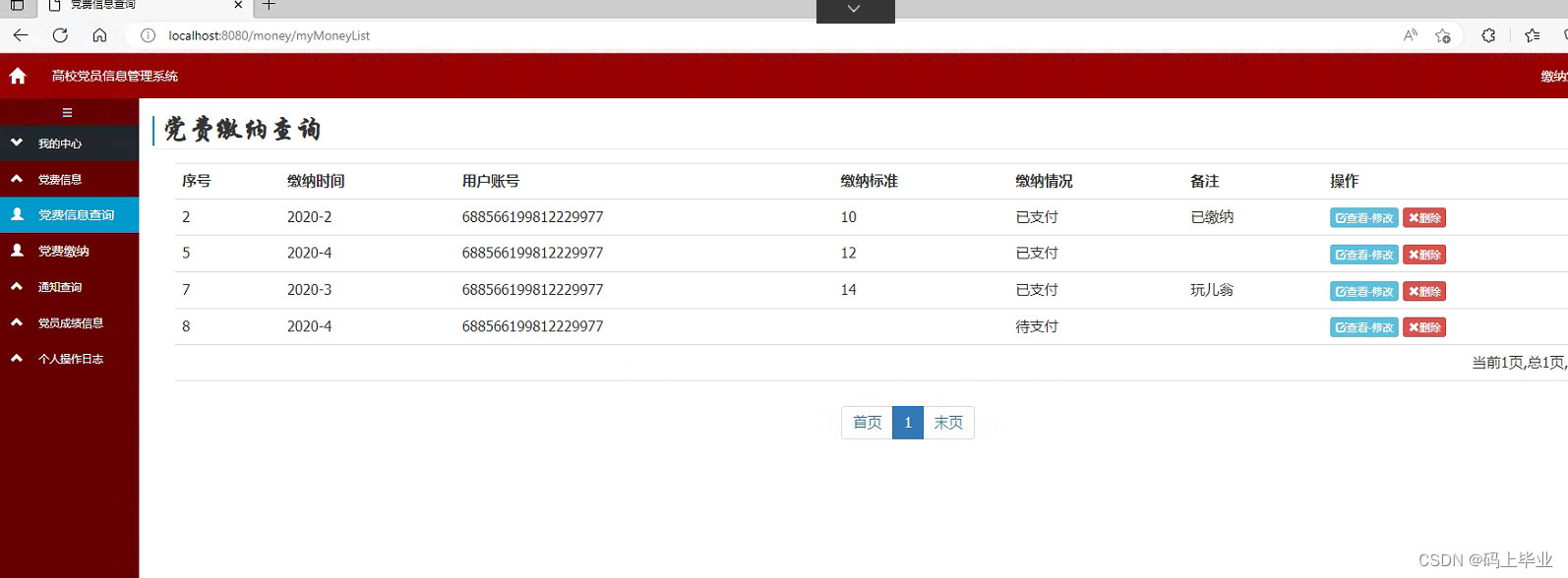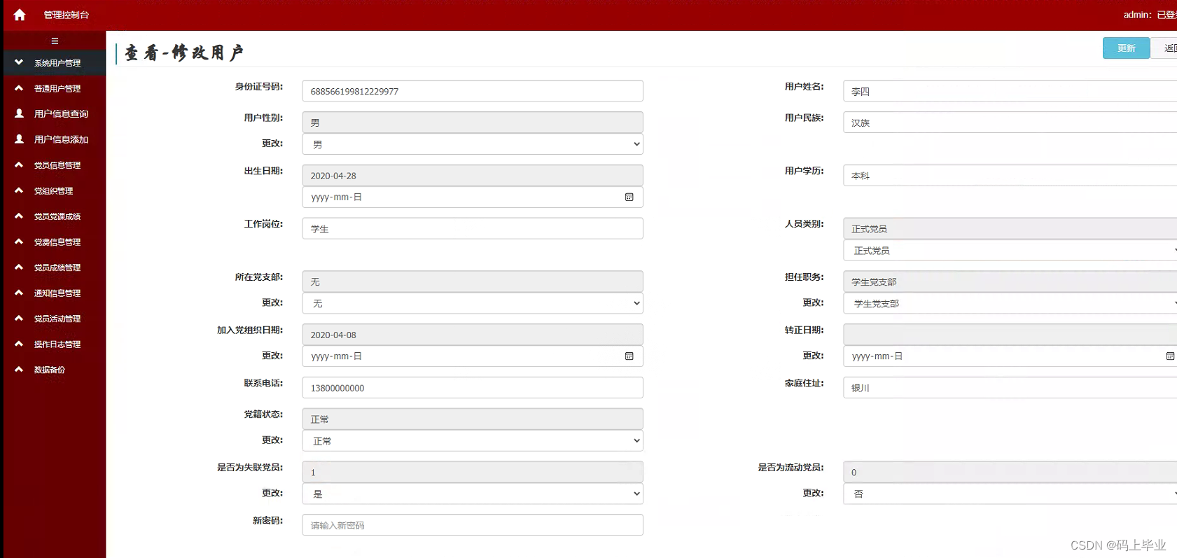 高校党员信息管理系统,分为普通用户和管理员两种角色。