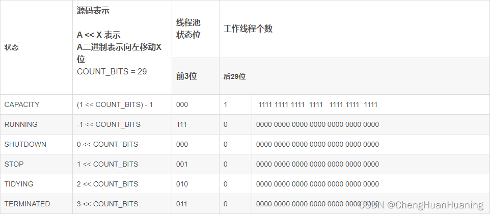 // 之所以-3,因为线程池的生命周期有 5 个状态,为了表达这 5 个状态,我们需要 3 个二进制位。