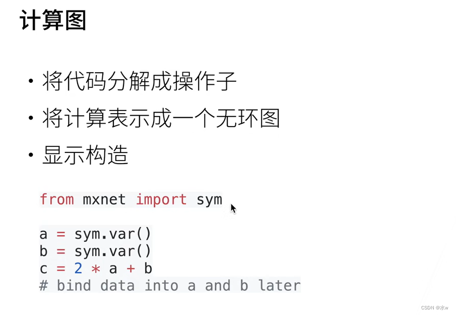 计算图:其中节点对应于数学运算。 计算图是表达和评估数学表达式的一种方式。