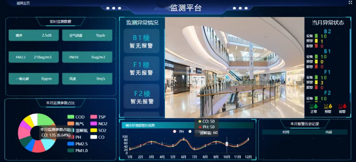 智慧商场系统借助物联网、移动互联技术,对相关设备运行状态与故障预警进行实时监测,并集成物资管理、水电网管理、项目管理、财务管理等协同应用,实现对设备设施运行质量的安全追踪,如有异常状态,会及时通知相关管理人员进行检修、筛查,并在后台做表单实时记录,辅助后期维修时查询和追踪责任,进一步缩短运维人员故障响应事件,支持对设备管理的持续优化。