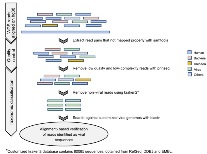 研究以中国代谢解析计划(ChinaMAP)的10585人数据为研究对象,对全基因组测序数据集中非人源性reads进行深入挖掘,用以调查中国人群的血液病毒组。