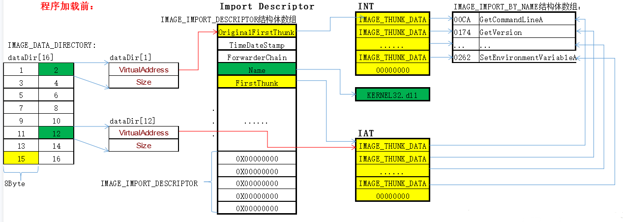 这需要提取 OriginalFirstThunk 字段,这里是一个 _IMAGE_IMPORT_BY_NAME类型的指针数组,代码如下: