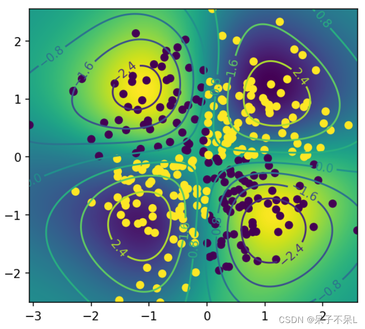 - # rbf:默认值,高斯核函数,基于半径的和函数,可以解决非线性问题