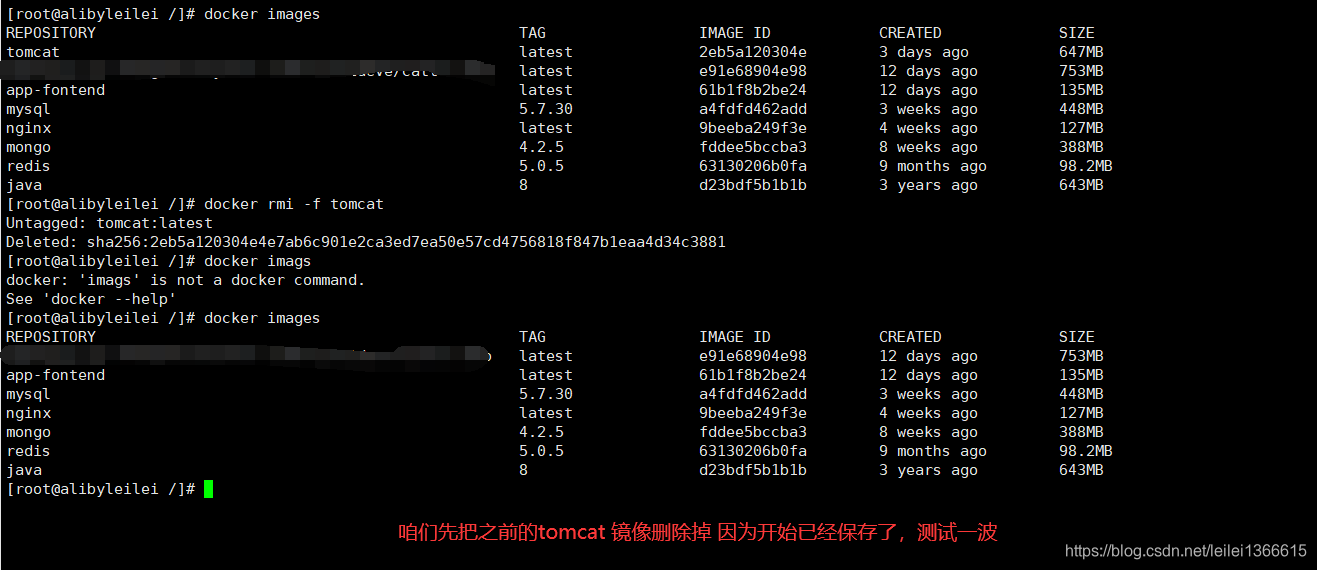 一通测试,发现我们拉了好多镜像了,但我们现在根本用不着,这些无用镜像怎么删除呢?