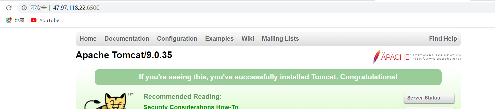 访问6500 端口进入到了 tomcat 首页 说明 咱commit 镜像成功了
