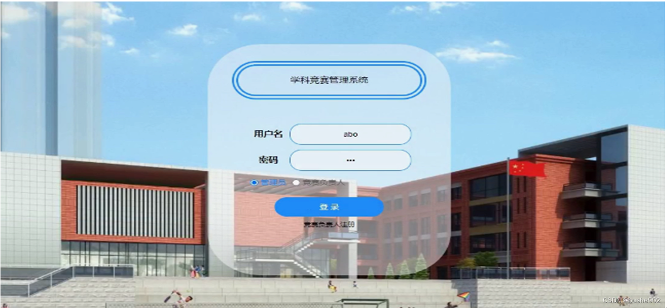 管理员进行登录,进入系统前在登录页面根据要求填写用户名和密码,选择角色等信息,点击登录进行登录操作,如图5-7所示。