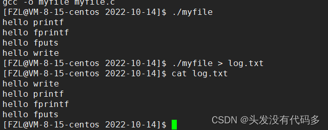 同样一个文件向显示器打印4行,向文件打印7行,C接口打印俩次,系统接口打印一次。