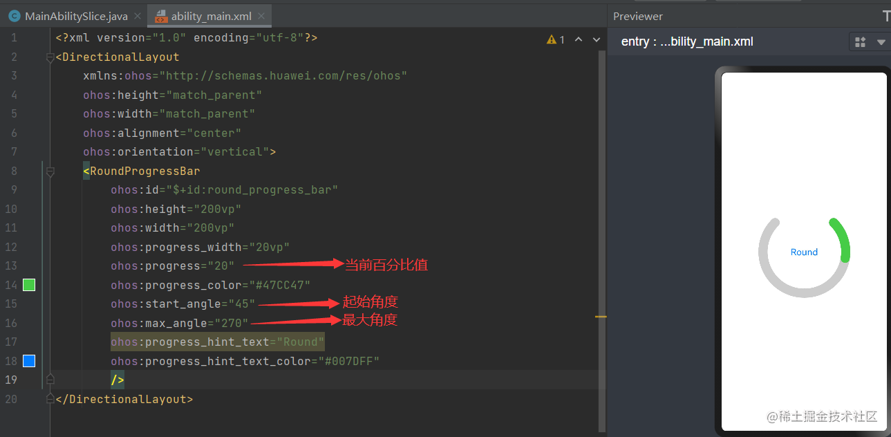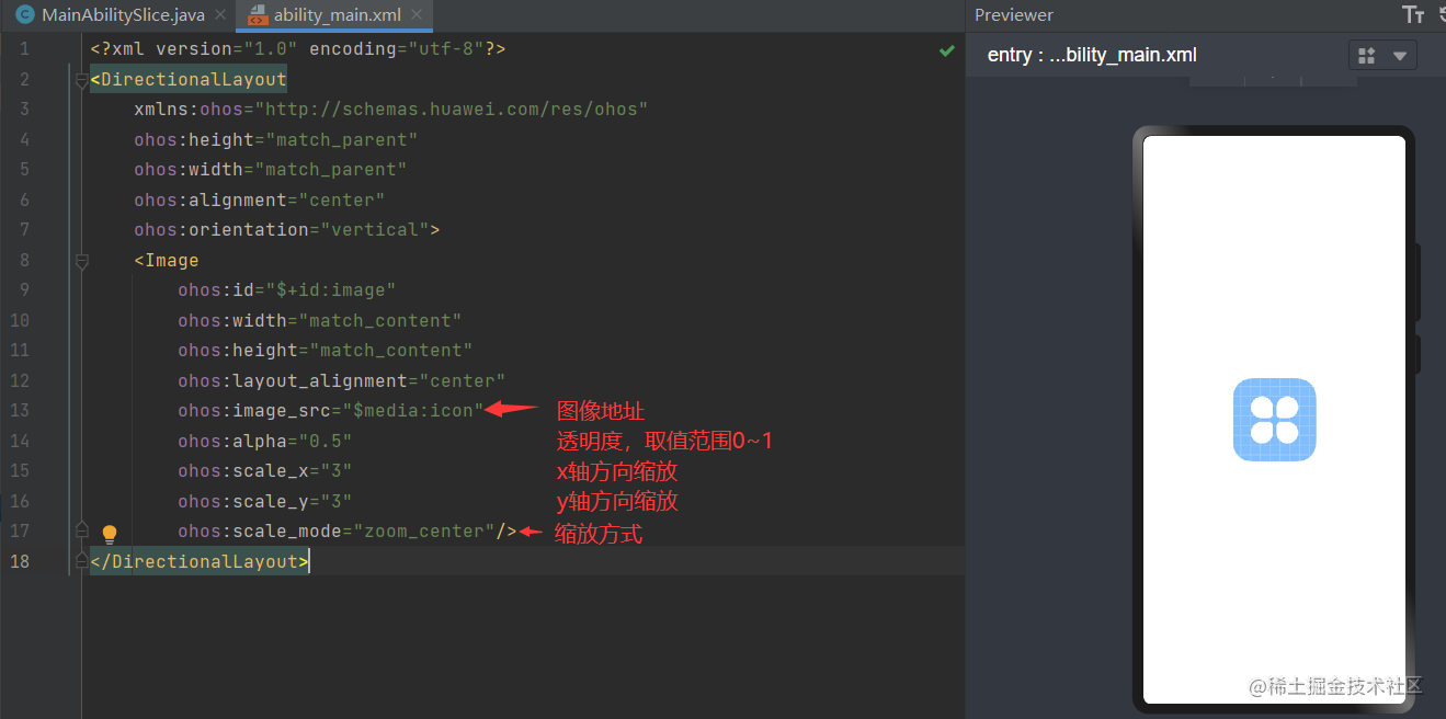 public class MainAbilitySlice extends AbilitySlice {@Overridepublic void onStart(Intent intent) {super.onStart(intent);super.setUIContent(ResourceTable.Layout_ability_main);