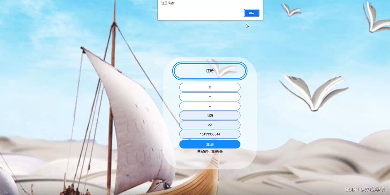 货主注册,在注册页面可以填写账号、密码、确认密码、姓名、年龄、手机等信息进行注册,如图5-10所示。