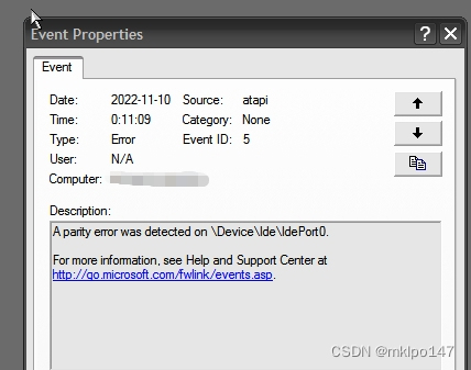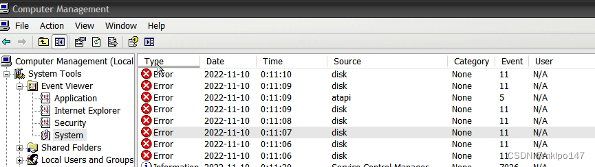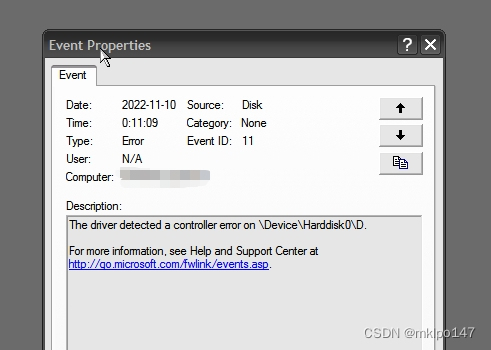 系统日志中每次启动系统后出现关于该盘的大量错误(事件id 5,事件id 11 等).