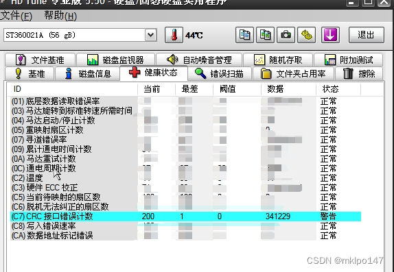 smart信息中的c7值在每次的硬盘通电中会不断增加.