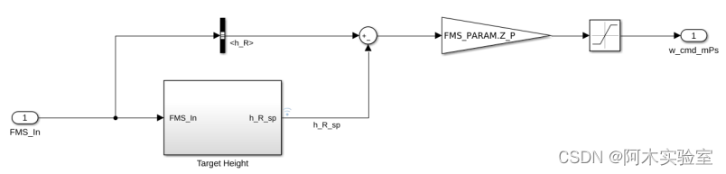 高度控制器的算法比较简单,就是一个 P 控制器,由高度误差输出高度方向的速度指令 w_cmd 。