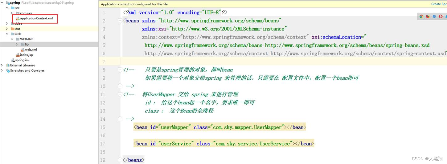 1:在src下新建一个文件:文件名为 applicationContext.xml