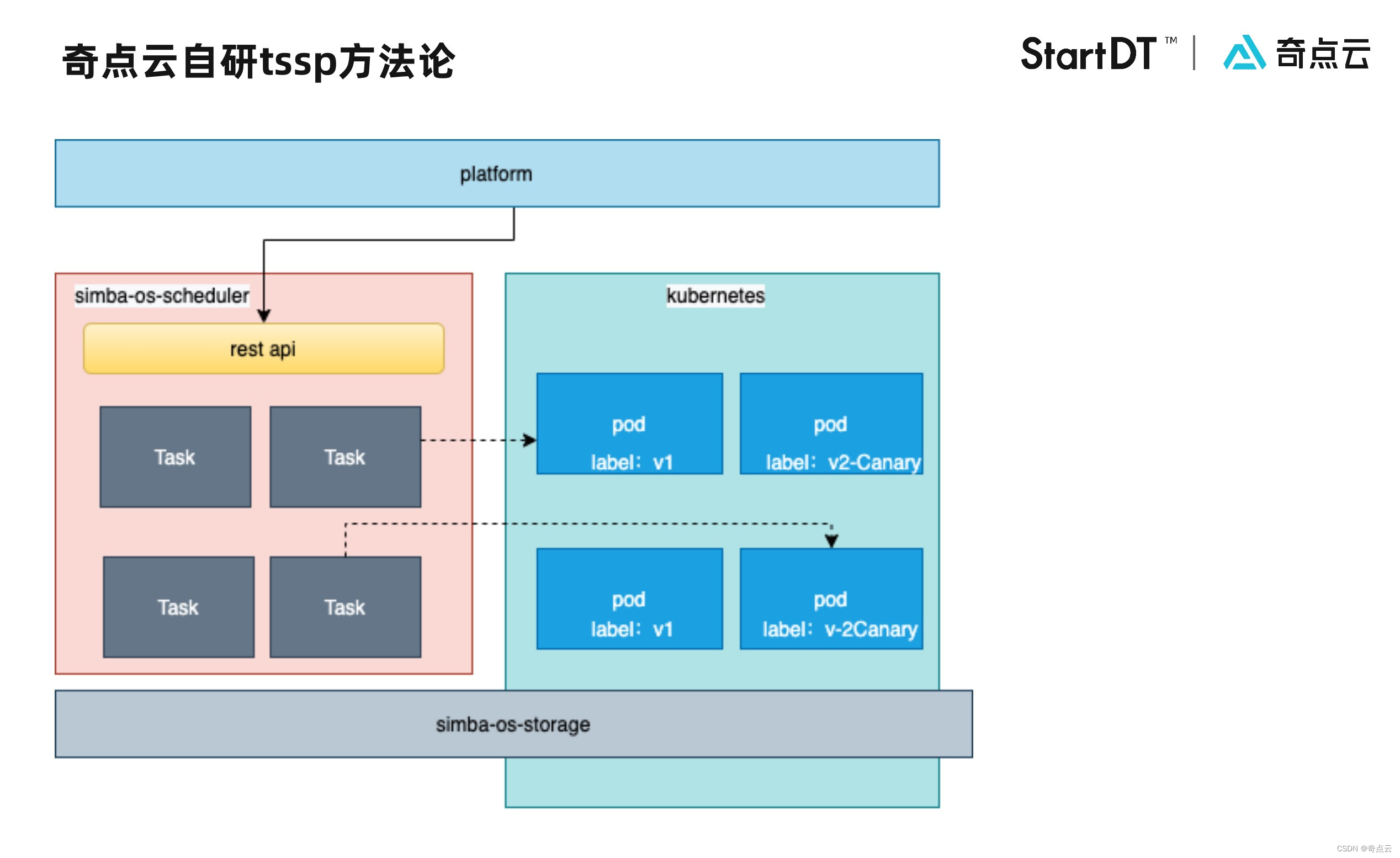 2. 基于 Kubernetes labels 技术和自研的 tssp 方法论(task-scheduler-storage-platfrom),实现金丝雀升级。