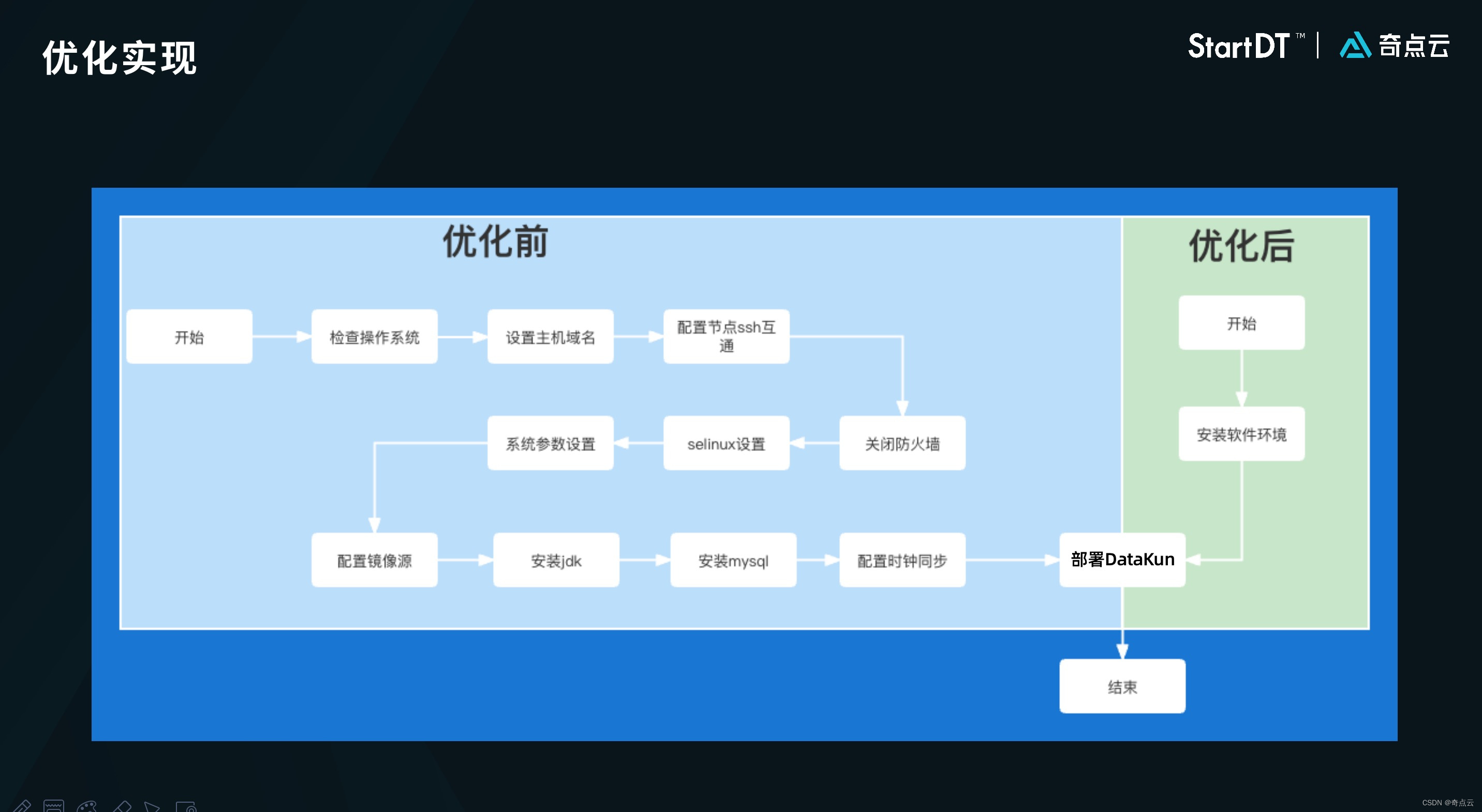 因此,闪电组以数据存算引擎 DataKun 为例,分析了目前的安装流程,进行标准化,形成了命令行部署脚本。