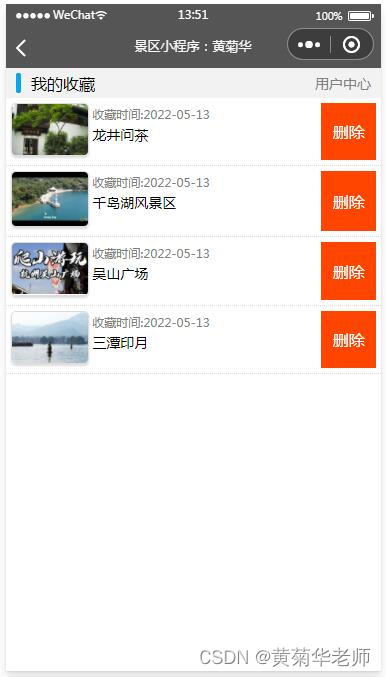 我的景点收藏:用户收藏的景点列表,可以删除。