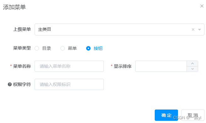 2.权限字符:控制器中定义的权限字符,如:@PreAuthorize(`@ss.hasPermi('system:user:list')`)这里的权限字符可以定义在菜单上也能定义在按钮上用来细化权限