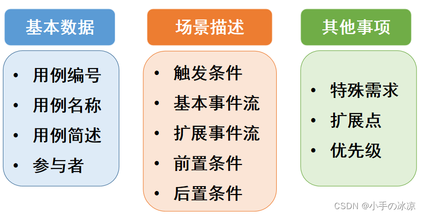 - 用例图的一般建模流程:确定参与者→确定用例→确定用例之间的关系→绘制用例图→描述用例规约