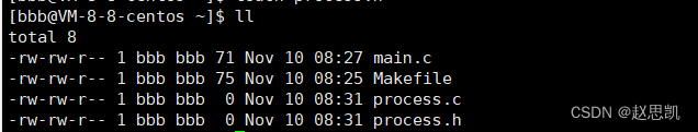 我们创建三个文件,两个源文件main.c和process.c以及一个头文件process.h。