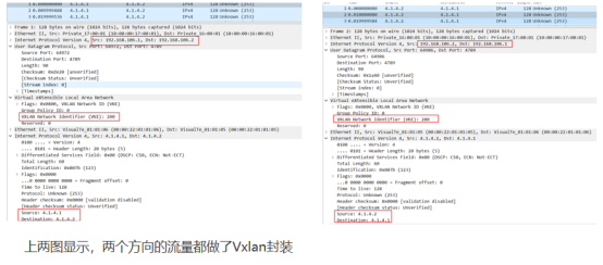 数据流量可以通,抓包可以看到数据流量也做了Vxlan封装