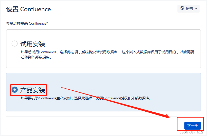 4、在浏览器输入访问地址可以打开初始设置界面,选择语言-中文