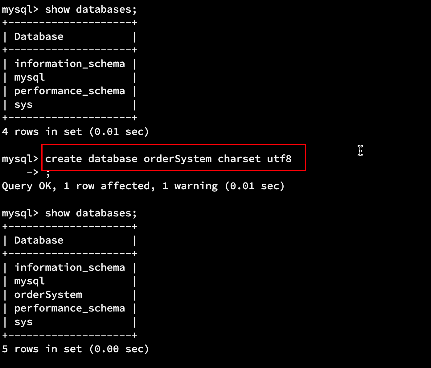 1. 首先创建一个数据库 create database orderSystem charset utf8; 2. 使用数据库 use orderSystem; 3. 导入数据 source sb.sql
