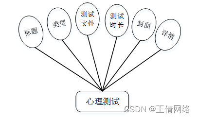 心理测试实体包括标题、类型、测试文件、测试时长、封面、详情等属性。心理测试实体图如图4-4所示: