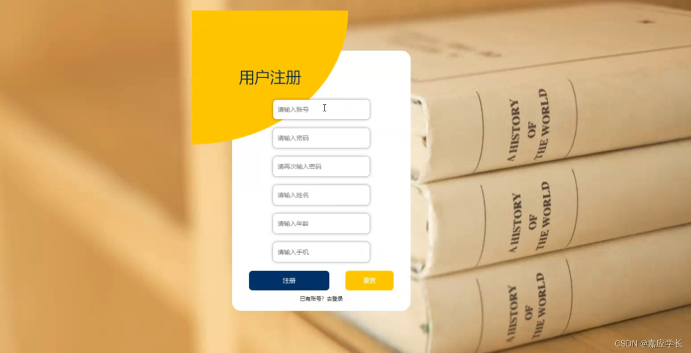 用户注册,在用户注册页面通过填写账号,密码,再次输入密码,姓名,年龄,手机等信息进行注册操作,如图5-2所示。
