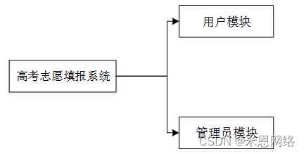 按照需求分析的要求我对本高考志愿填报系统主要进行了模块设计,分为用户模块和管理员模块。如图4-1所示。