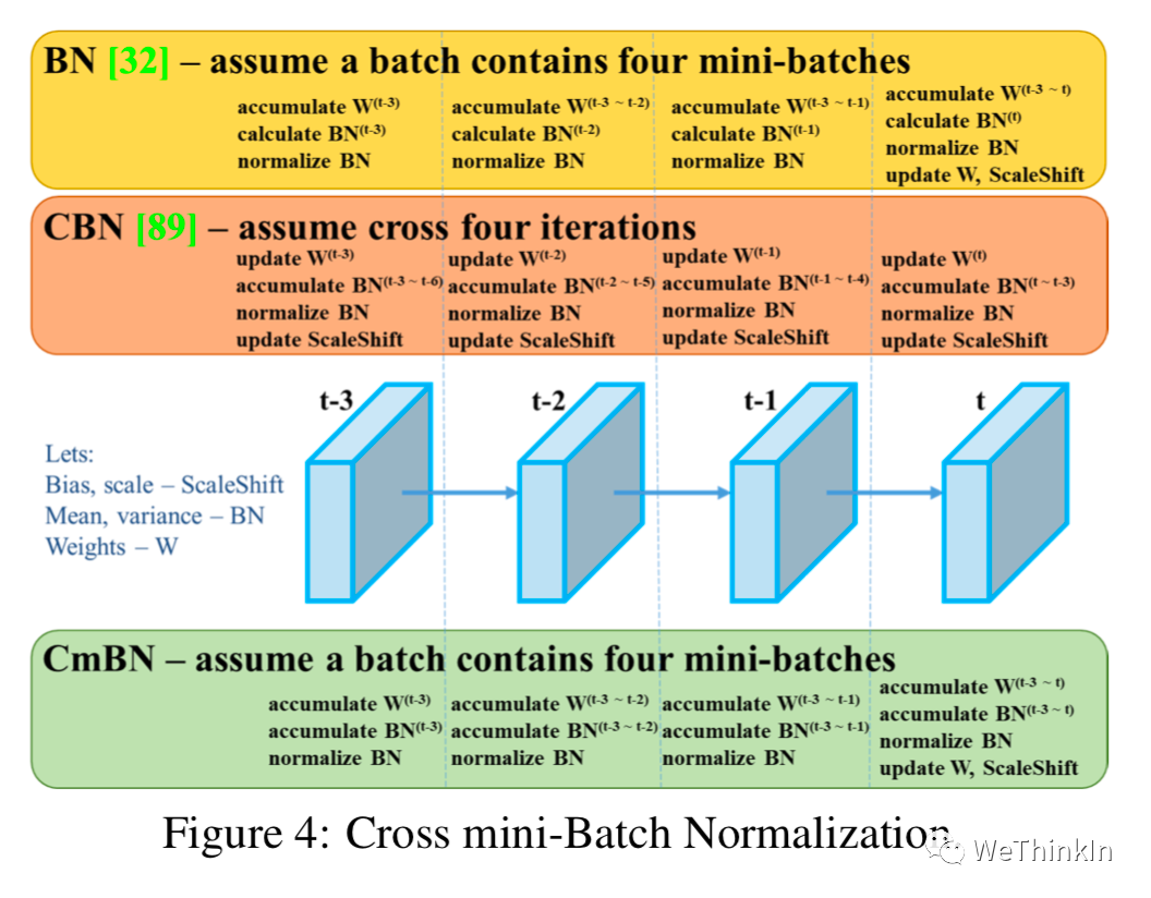 而CmBN是独立利用多个mini-batch内的数据进行BN操作。(每四个迭代后统一计算一次整体BN)