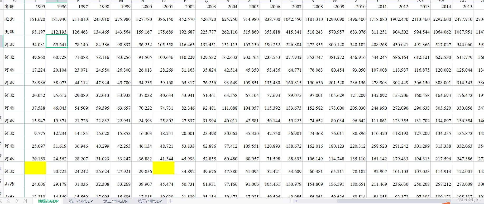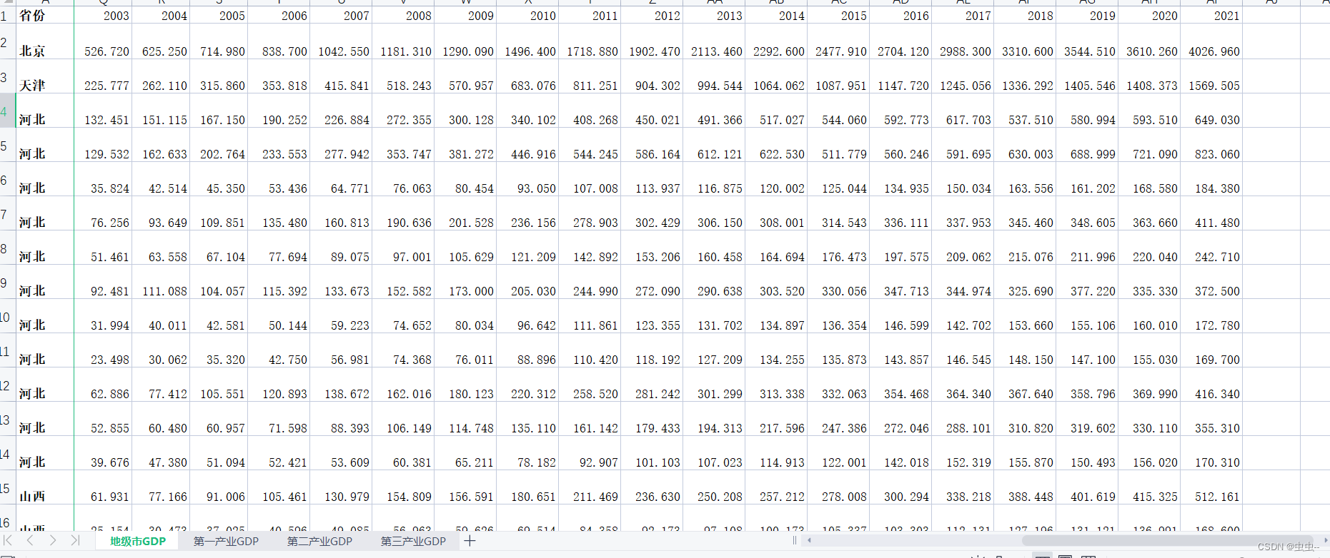 3、指标说明: 包含各个地级市GDP以及一二三产业GDP 第一产业GDP 第二产业GDP 第三产业GDP