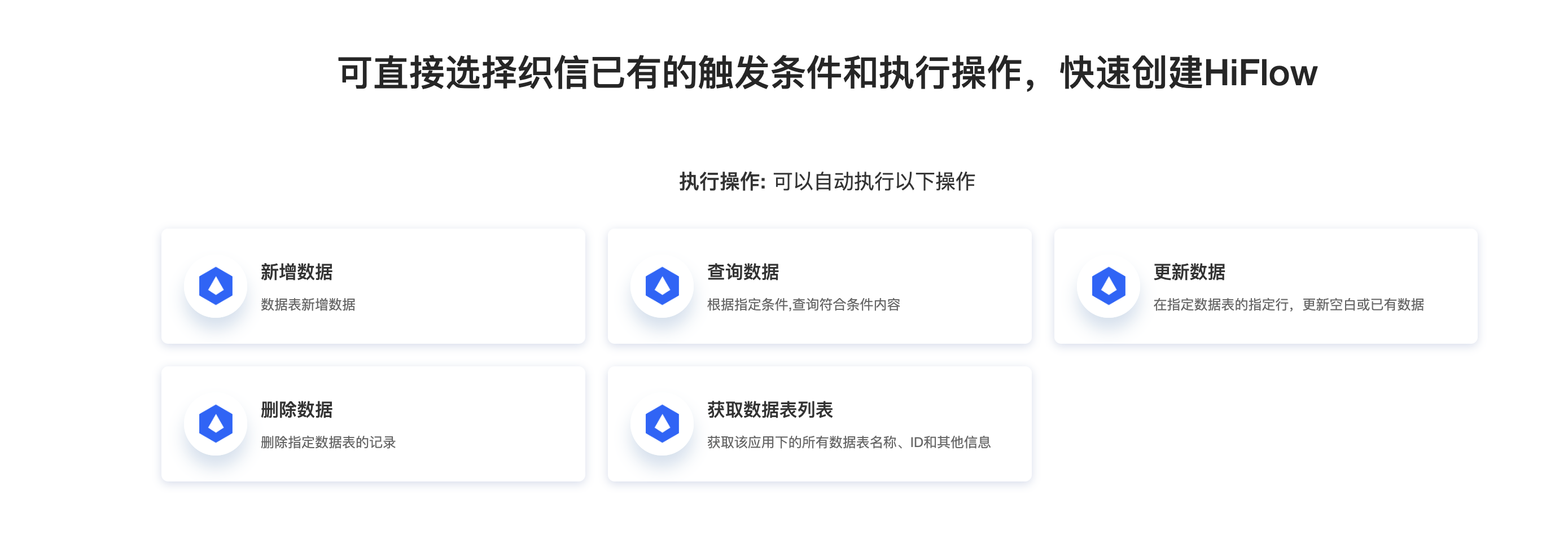 【执行操作】:新增数据、查询数据、更新数据、删除数据、获取数据表列表。