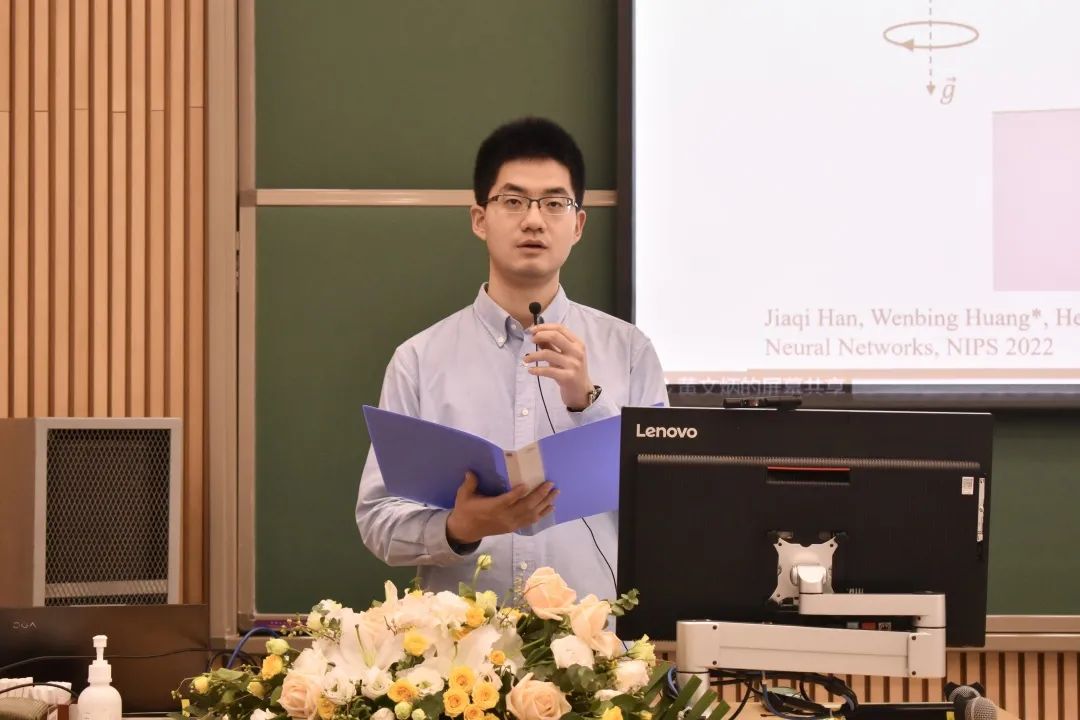 针对药物分子设计,提出了主子图principalsubgraph(PS)这一新颖概念,以捕捉分子中带有丰富信息的高频模式,继而通过一种基于合并-更新的算法自动地从数据集中抽取高频出现的PS,并作为子图库用于后续的分子图生成。针对蛋白质动力学模拟,首次提出了多层级等变图神经网络EGHN,其由等变池化E-Pool和等变去池化E-UnPool两个部分通过U-Net连接组成,分别负责信息从细粒度到粗粒度的聚合、从粗粒度到细粒度的分发。针对复杂物体物理交互,首次提出了“子等变”的概念,即把欧氏等变GNN放缩成,只服从由外部力场所诱导子群上的等变GNN,并给出表达能力的完备性证明。SubequivariantGNN很好拟合了现实物理世界因为外部力场(如重力)所造成的对称性破缺。黄老师细致的讲解引起现场同学的热烈讨论,分享完毕多名同学向老师请教提问,老师都一一进行了详细指导