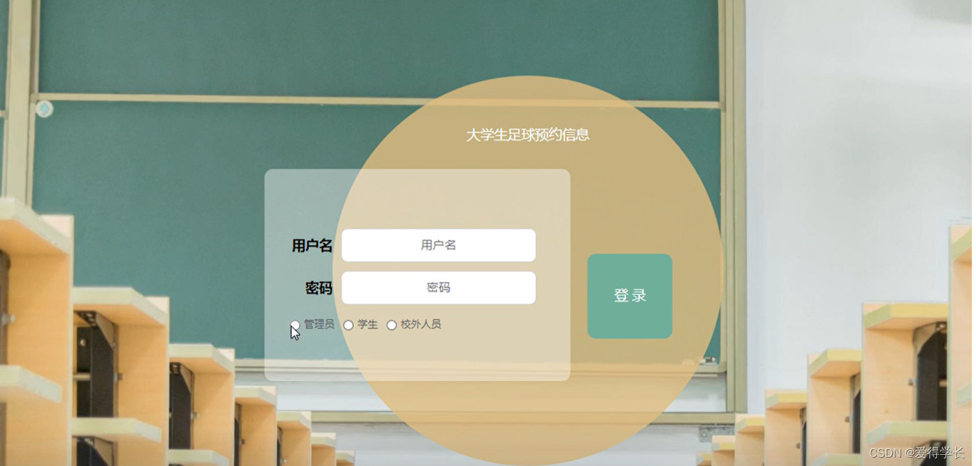 登录,用户通过填写注册时输入的用户名、密码、选择角色等信息进行登录操作,如图5-1所示。