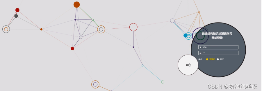 在数据结构知识点渐进学习网站设计的网站前台可以查看首页、知识点、交流论坛、在线练习、公告信息、个人中心、后台管理等内容,用户如果想要进行其他操作,则需要注册和登录,网站前台如图5-1所示。