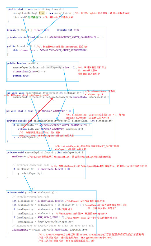 (1)ArrayList集合底层是数组结构,新增元素时先创建长度为0的Object数组。