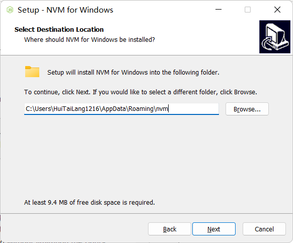 2、选择nvm安装的路径