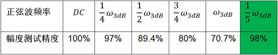 表1. 测试不同频率的正弦波时对应的幅度精度