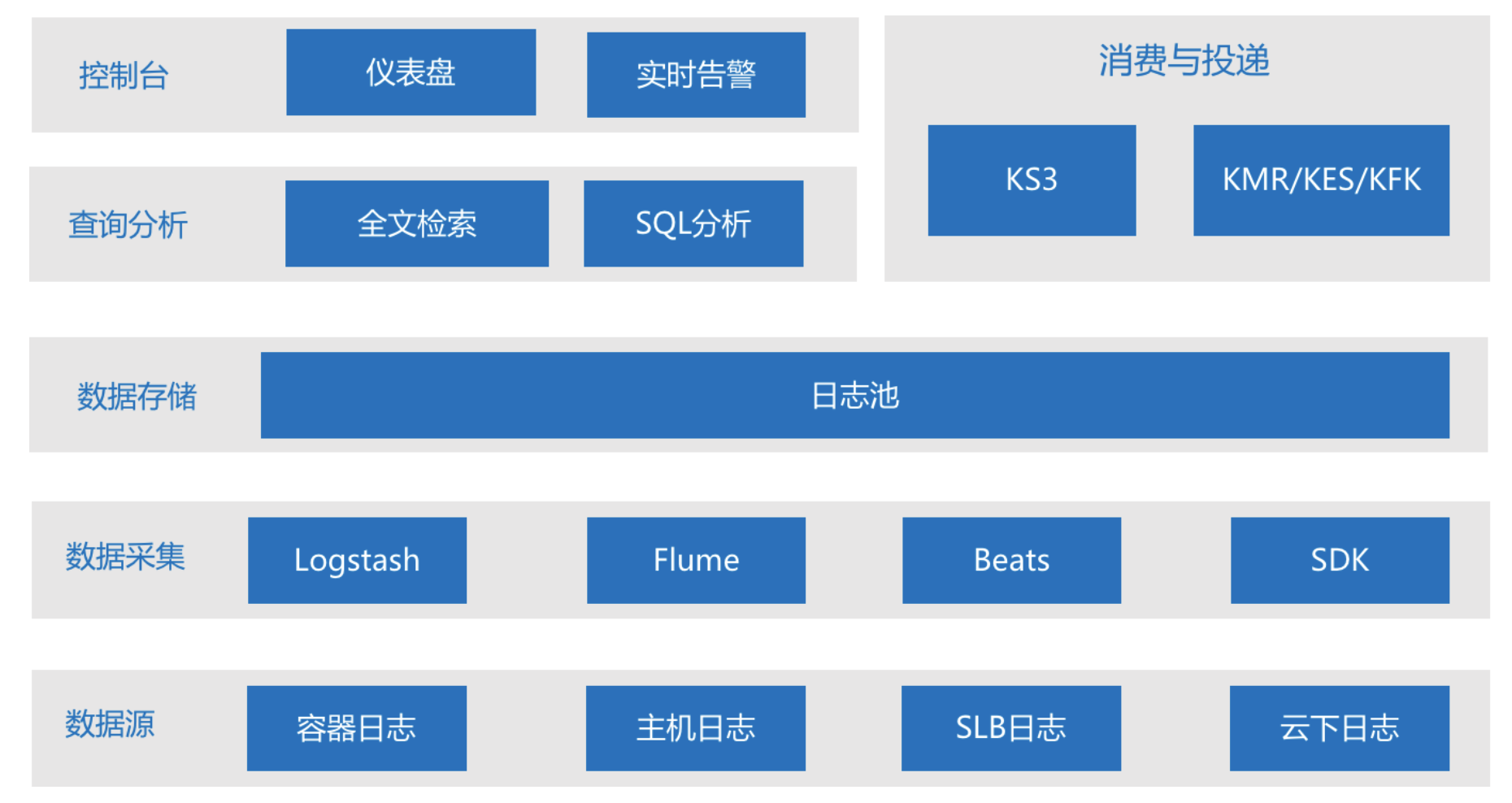 经过这一系列的测试后, 金山云将 JuiceFS 应用在日志服务( Klog)中,为企业用户提供一站式日志类数据服务,实现了云上的数据可以不出云,直接就完成数据采集,存储分析以及告警的一站式服务;云下的数据提供了 SDK 客户端,通过采集工具来实现数据上云的整个整条链路,最后可以把数据投递到 KS3 和 KMR,来实现数据的加工计算。