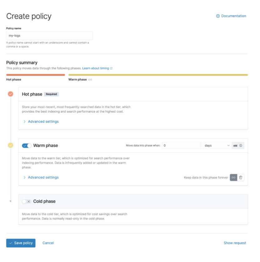 Index Lifecycle Management(ILM)我们分为了 4 个阶段: