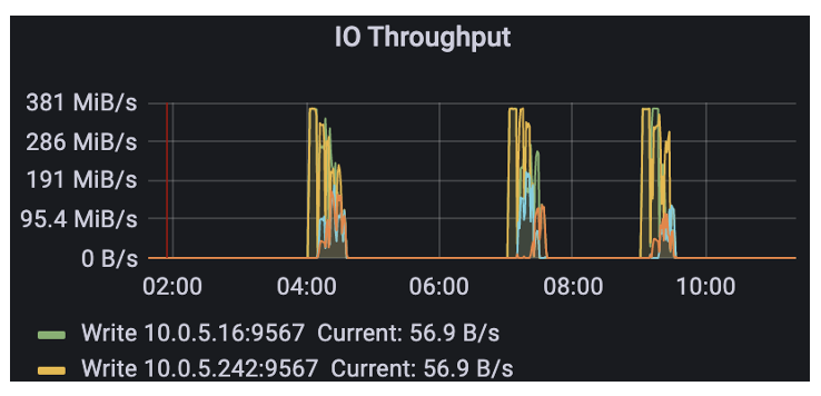 第二个问题就是写入的 QPS 有明显下降。我们可以看到监控图中 Write QPS 非常不稳定,这并不代表 ES 真实的 QPS,因为监控图中的 QPS 是通过两次得到的 documents 数量来做差得到的,由于旧版 JuiceFS 存在一些内核缓存问题,导致 ES 读到了一些旧数据。我们把该问题反馈给了社区, JuiceFS 1.0 正式发布后问题得到解决。