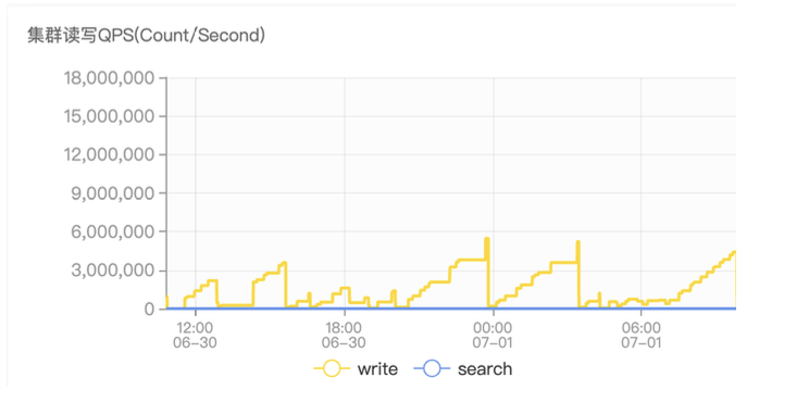我们就进行了新一轮的测试,新一轮的测试确定了 hot 节点 3 台,8C16G 500G SSD, warm 节点 2 台,4C16G 200G SSD,测试时长 1 周,每天写入数据量 1TB(1 副本),1 天后转到 warm 节点 。没有再出现索引数据损坏情况,通过这次压测没有再出现之前遇到的问题,这就给了我们信心,接下来我们把整个的 ES 逐渐的往这方面来做迁移。