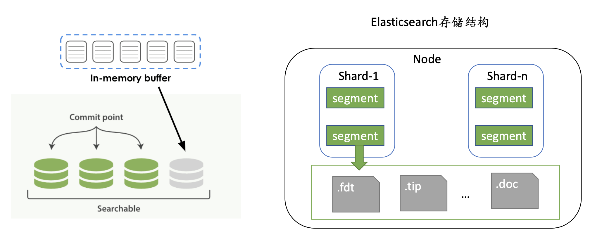 ES 的写入流程是先写到 buffer 中也就是内存里面,当内存满或者是到达索引设定的时间阈值以后,会刷新到磁盘上,这时候会生成 ES 的 segment。它是由一堆的数据和元数据文件来构成的,每次刷新就会生成一系列的 segment,这时候就会产生频繁的 IO 调用。
