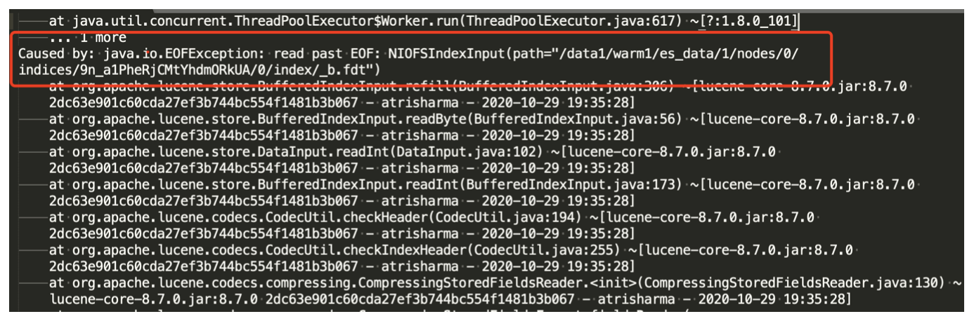 这三个参数的缓存默认是 1,把时长改成 0.1,它确实解决了索引损坏的问题,但是会带来一些新的问题,因为元数据的缓存和数据缓存的时间变短,会导致在执行系统命令的时候,比如 curl 一个系统命令,查看索引数量或者集群状态,正常的情况下,调用可能在秒级,而这种变化可能导致需要数 10 秒才能够完成。