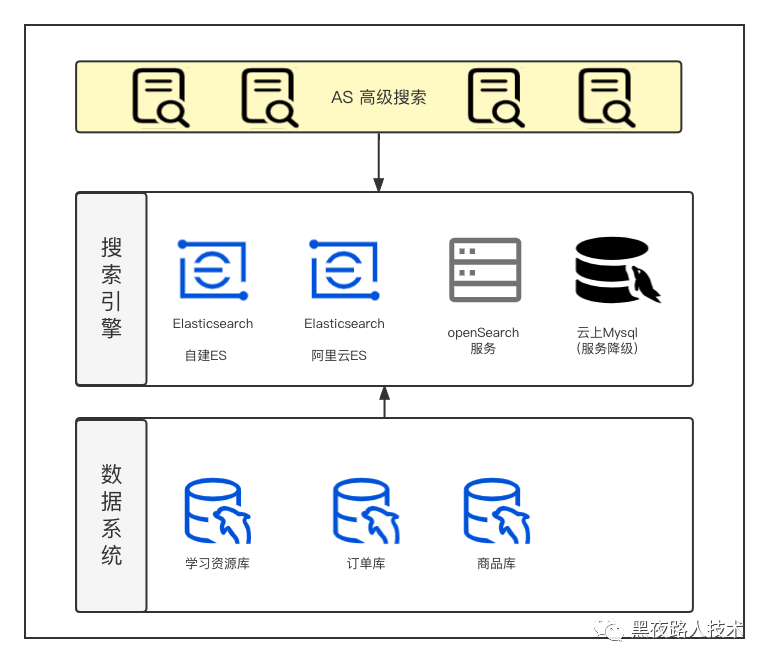完整的搜索服务可以认为是 AS + ES + DB的架构,整个搜索服务的基本架构图:AS(自有Go搜索服务) -> ES -> DB 的整个层次结构