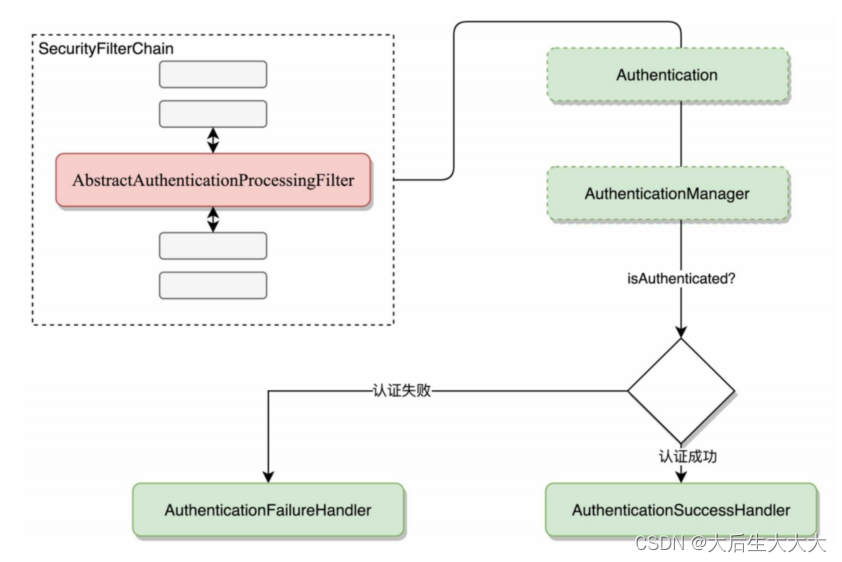 小伙伴现在大致已经熟悉Authentication、AuthenticationManager、ProviderManager以及AuthenticationProvider的工作原理了。接下我们学习下这些组件是如何跟登录联系起来的。这里就要设计我们下面学习的一个重要的过滤器 ------> AbstractAuthenticationProcessingFilter。