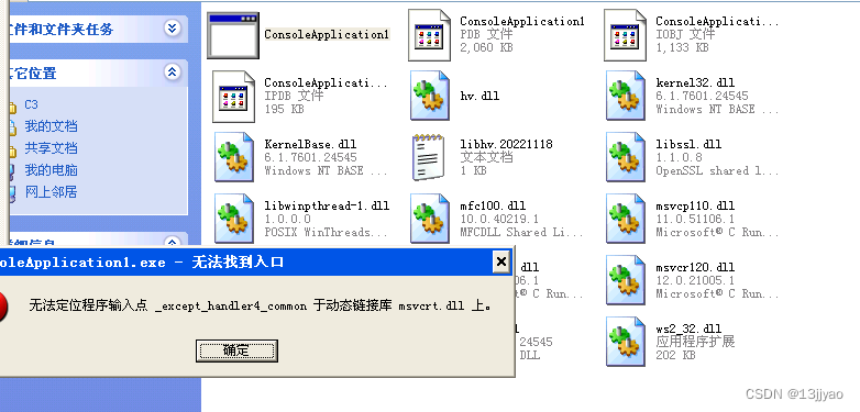 第三方网络库(hv库)使用到了wsapoll,inet_pton,inet_ntop等函数,这些函数是定义在系统库ws2_32.dll里面的,而XP系统的ws2_32.dll库并没有这些函数。这些函数在 Windows Vista 及更高版本上才被定义。