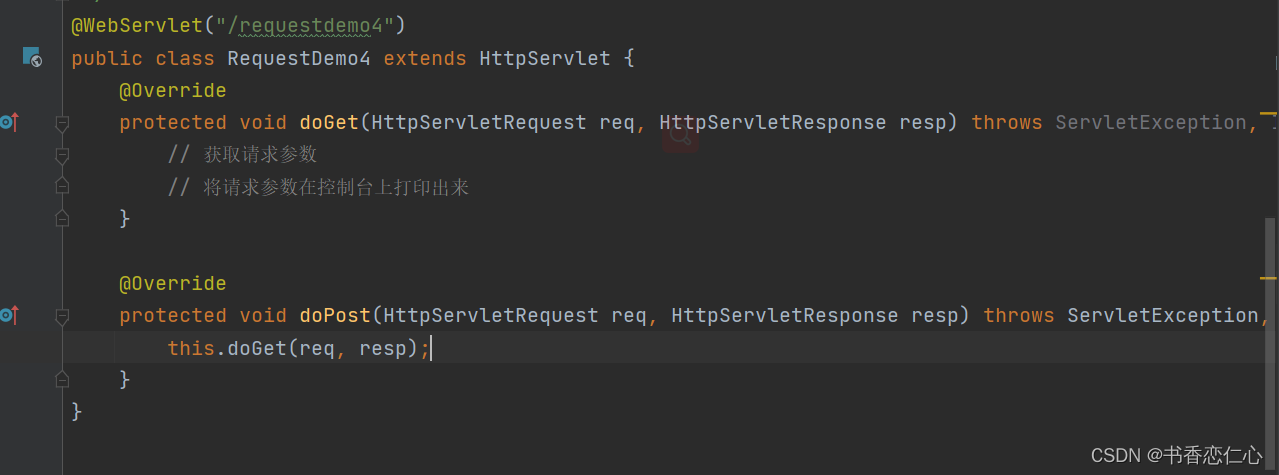 当我们的Servlet类继承的是HttpServlet类的时候,doGet和doPost方法中的参数就变成HttpServletRequest和HttpServletReponse