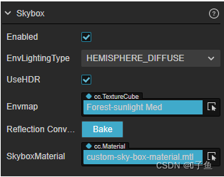 TextureCube 类型的单张贴图,可在 Creator 中设置。
